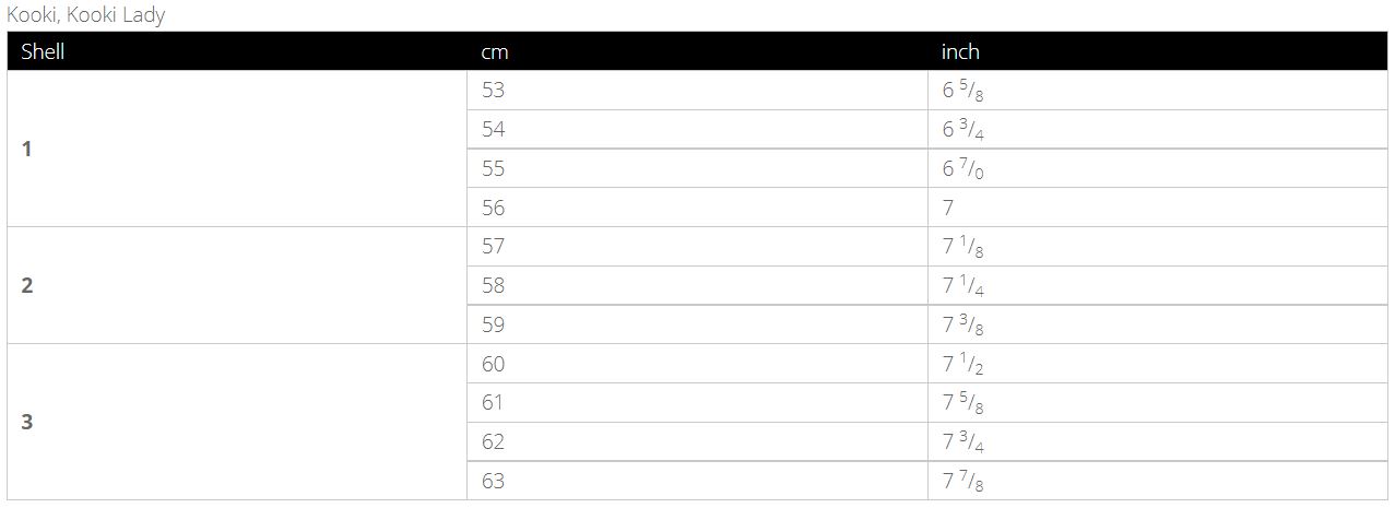 Går att byta inner liners med storlekarna i sitt skal. Har du ex. skal 2 kan du byta storlekar mellan 57-59.